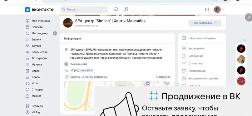 Настройка сообщества Вконтакте для СПА-салона в Шушенском