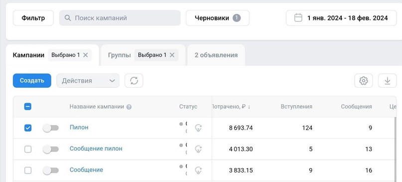 Результаты с 1 января по 18 февраля. Рекламная кампания досрочно приостановлена. Полная запись.