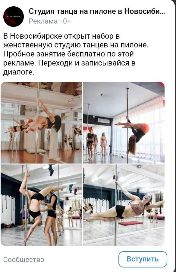 Делюсь новым кейсом по продвижению школы танцев на пилоне в Шушенском