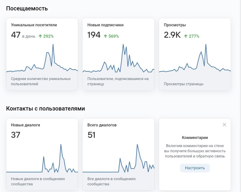 194 человека заинтересовались рекламным предложением и захотели стать частью сообщества. Это теплая аудитория, с которой можно работать далее: отправлять акции, делиться персональными предложениями.